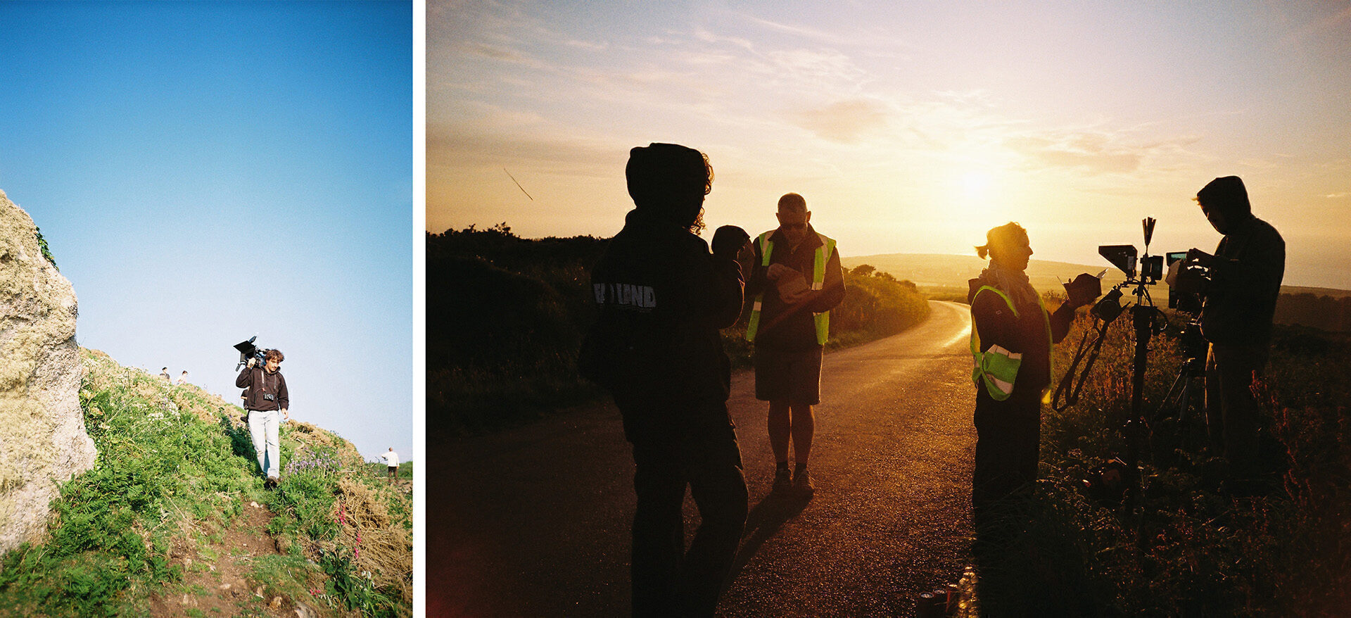 Born in Iran and raised in rural Denmark, Naghmeh (pictured above right) brings a rich cultural lens to her work, drawing on the visual poetry of Iranian cinema and a love of layered symbolism. Shot on 16mm by Ruben Woodin Dechamps, the film is a postcard to British summer – green winding roads, soft pink skies, and the quiet magic of days that refuse to end.
